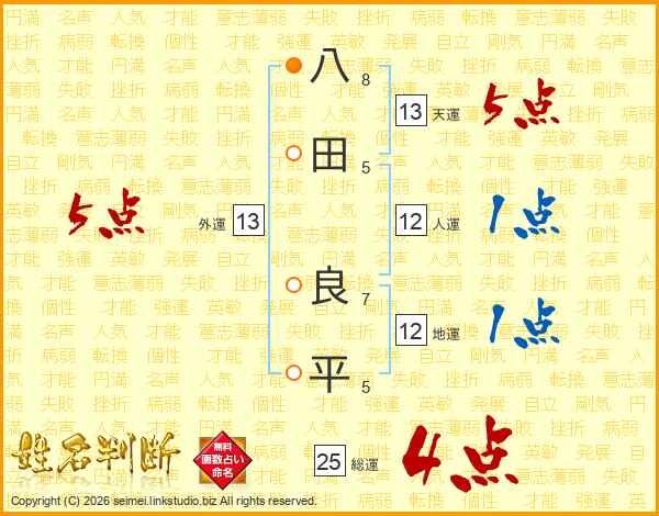 八田良平さんの天運は13画の5点!