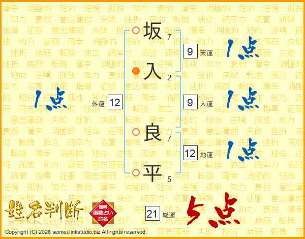 坂入良平さんの総運は21画の5点!