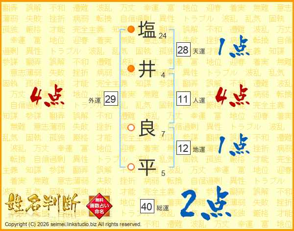 塩(24画)井(4画) 良(7画)平(5画)