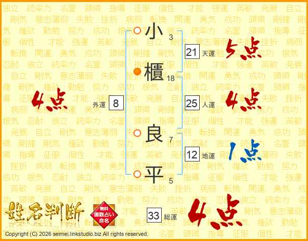 小櫃良平さんの総運は33画の4点!