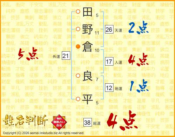 田野倉良平さんの総運は38画の4点!