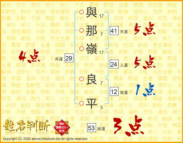 與那嶺良平さんの天運は41画の5点!