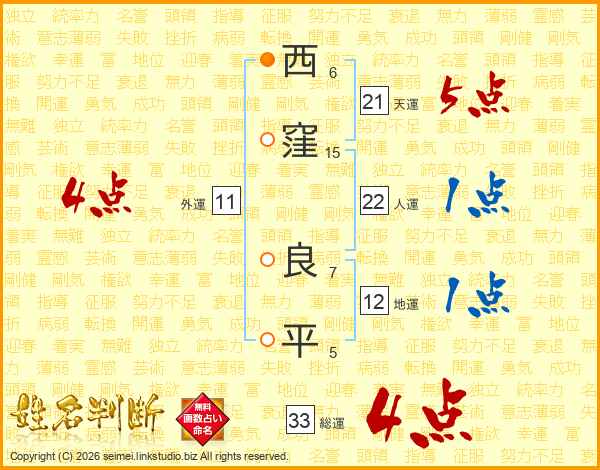 西窪良平さんの総運は33画の4点!