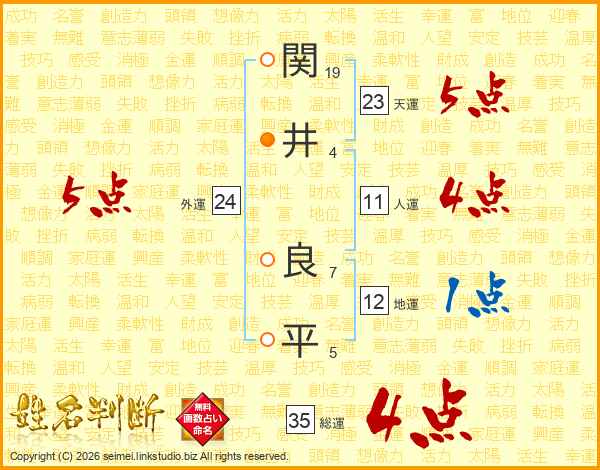 関井良平さんの総運は35画の4点!