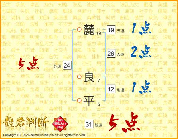 麓良平さんの総運は31画の5点!