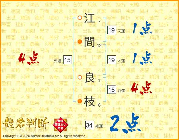 江(7画)間(12画) 良(7画)枝(8画)