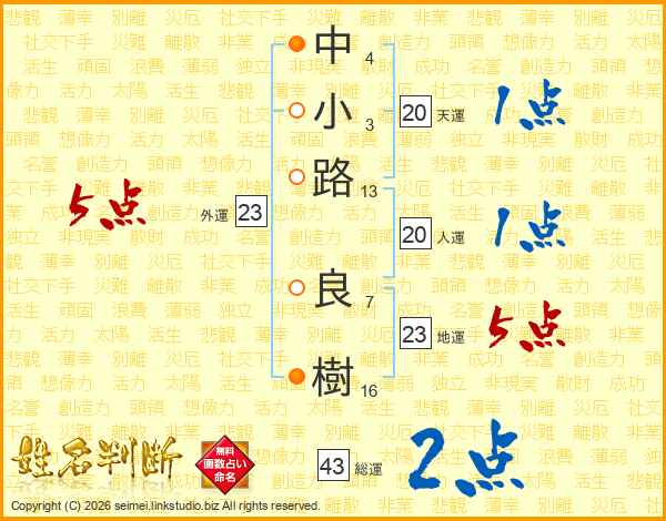 中小路良樹さんの地運は23画の5点!