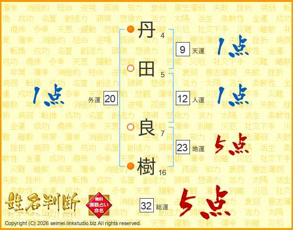 丹田良樹さんの総運は32画の5点!