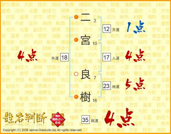 二宮良樹さんの外運は18画の4点!