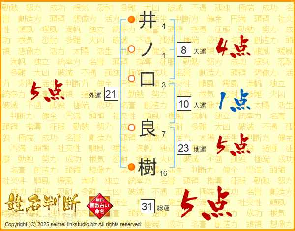 井(4画)ノ(1画)口(3画) 良(7画)樹(16画)