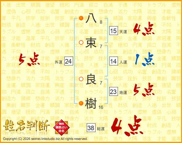 八束良樹さんの総運は38画の4点!