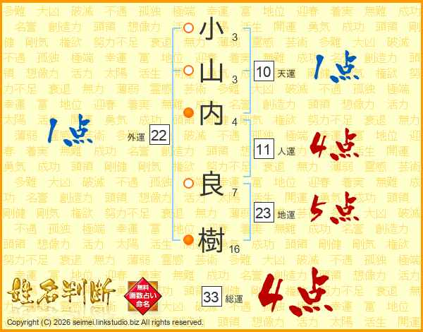 小山内良樹さんの総運は33画の4点!