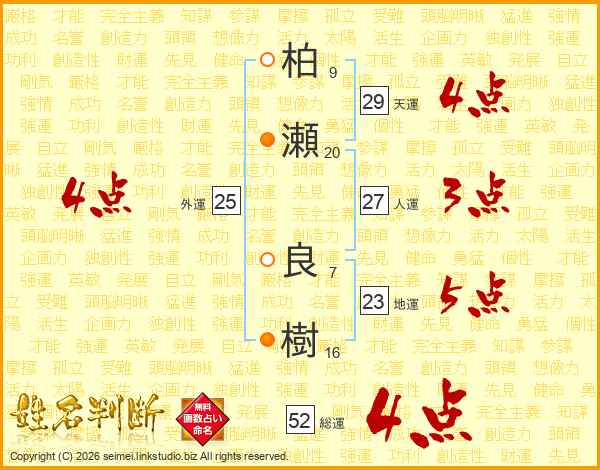 柏瀬良樹さんの総運は52画の4点!