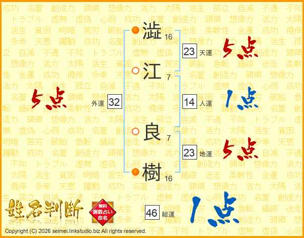 澁江良樹さんの総運は46画の1点!