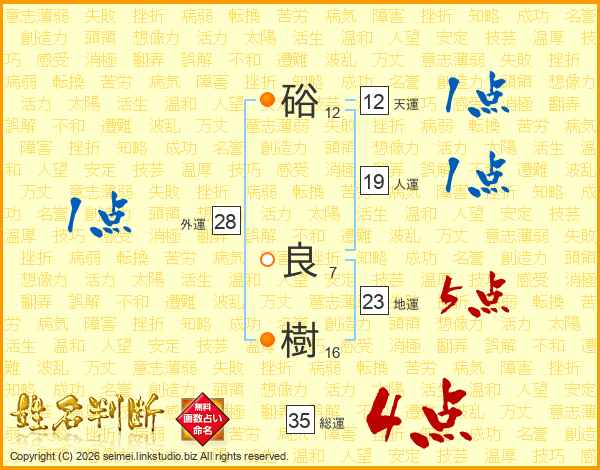 硲良樹さんの総運は35画の4点!