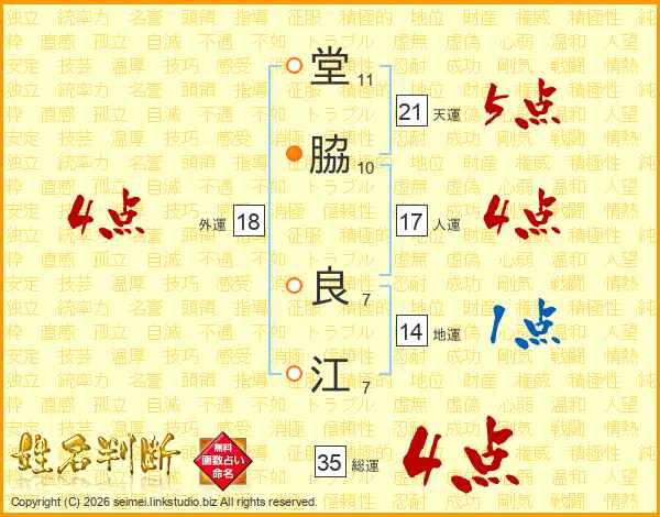 堂脇良江さんの総運は35画の4点!