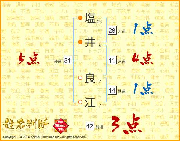 塩(24画)井(4画) 良(7画)江(7画)