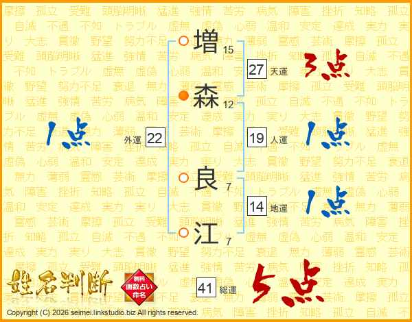 増(15画)森(12画) 良(7画)江(7画)