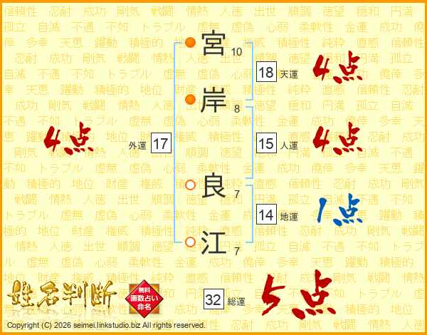 宮岸良江さんの総運は32画の5点!
