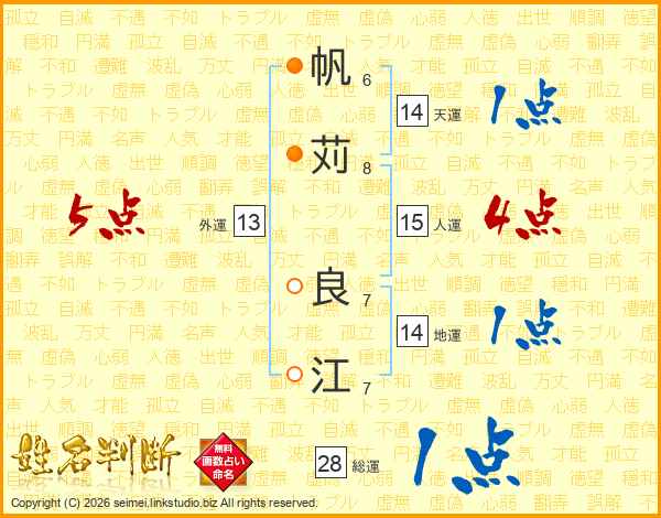 帆苅良江さんの総運は28画の1点!