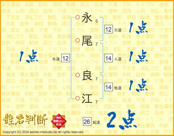 永(5画)尾(7画) 良(7画)江(7画)