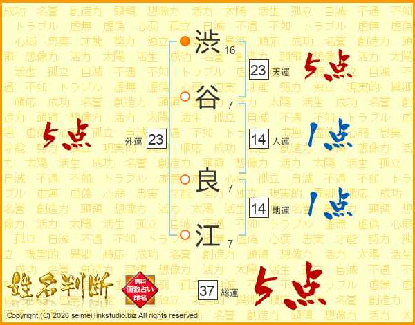 渋谷良江さんの総運は37画の5点!