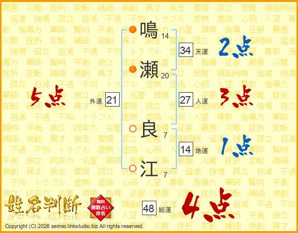 鳴瀬良江さんの総運は48画の4点!