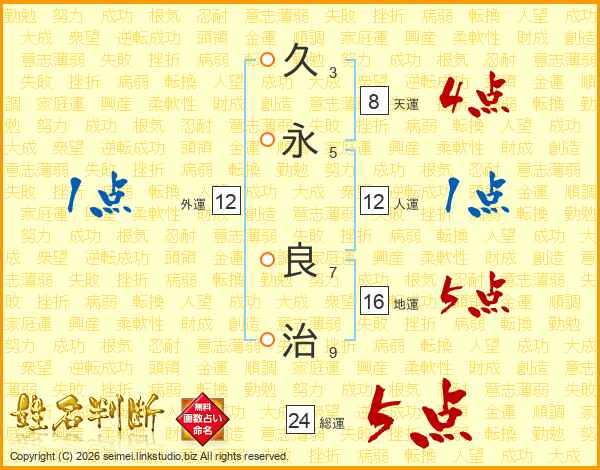 久永良治さんの総運は24画の5点!