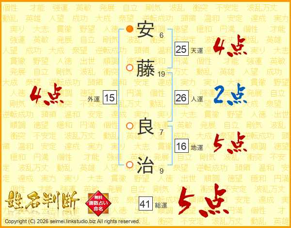 安(6画)藤(19画) 良(7画)治(9画)