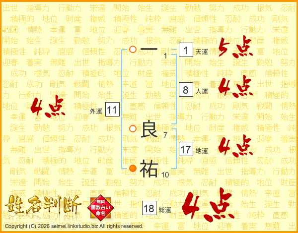 一良祐さんの総運は18画の4点!