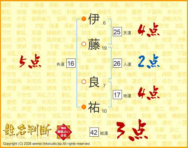 伊藤良祐さんの天運は25画の4点!