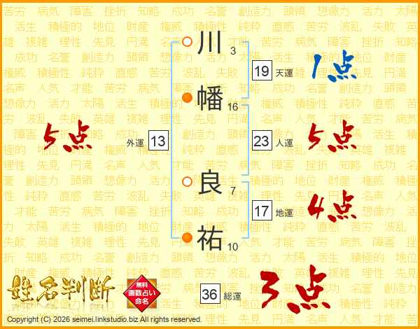 川幡良祐さんの天運は19画の1点!
