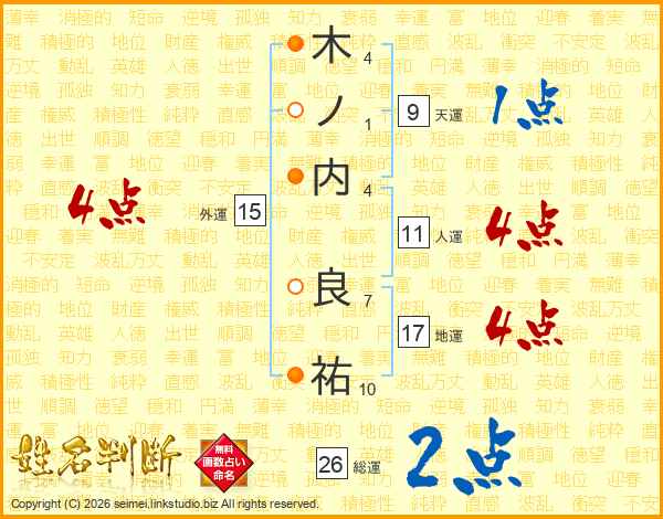 木ノ内良祐さんの総運は26画の2点!