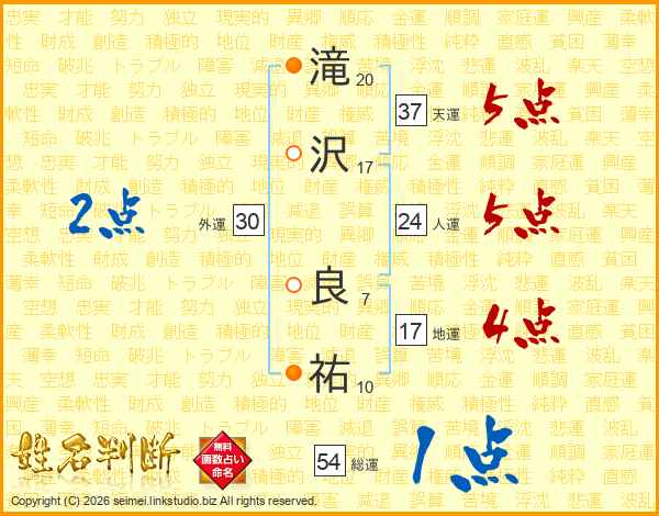 滝沢良祐さんの天運は37画の5点!