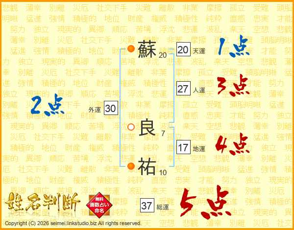 蘇良祐さんの総運は37画の5点!