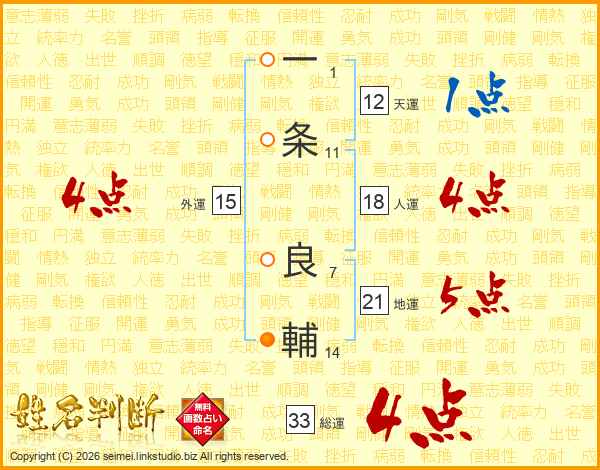 一条良輔さんの総運は33画の4点!