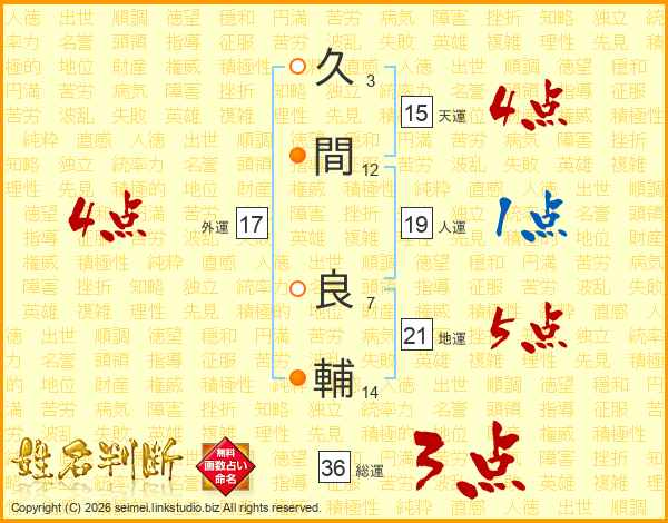 久間良輔さんの総運は36画の3点!