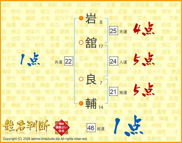 岩(8画)舘(17画) 良(7画)輔(14画)