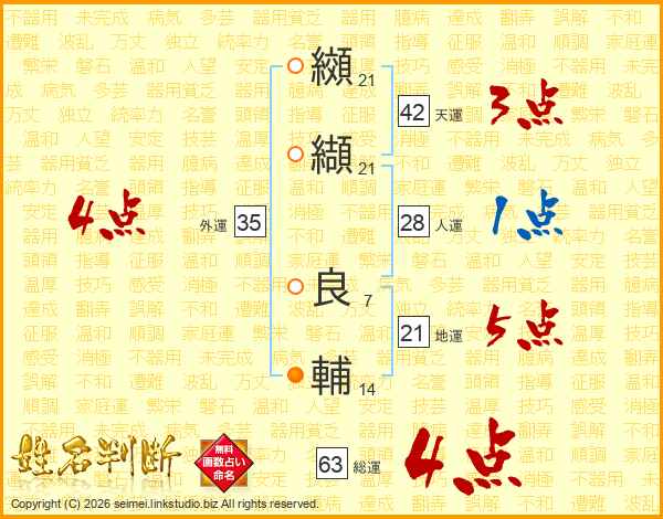 纐纈良輔さんの総運は63画の4点!
