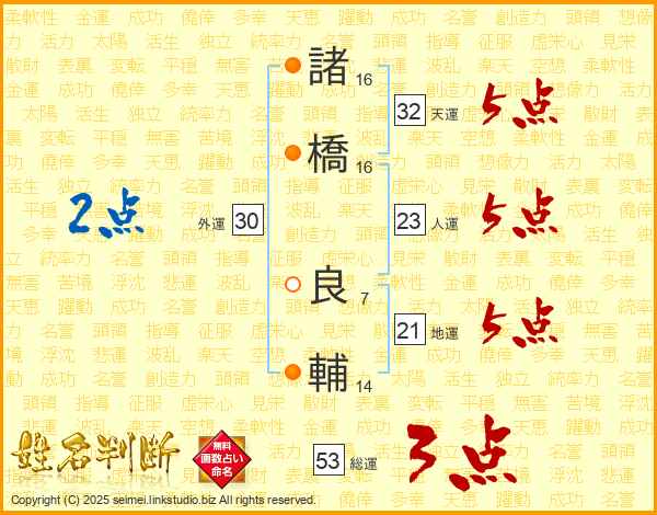 諸(16画)橋(16画) 良(7画)輔(14画)