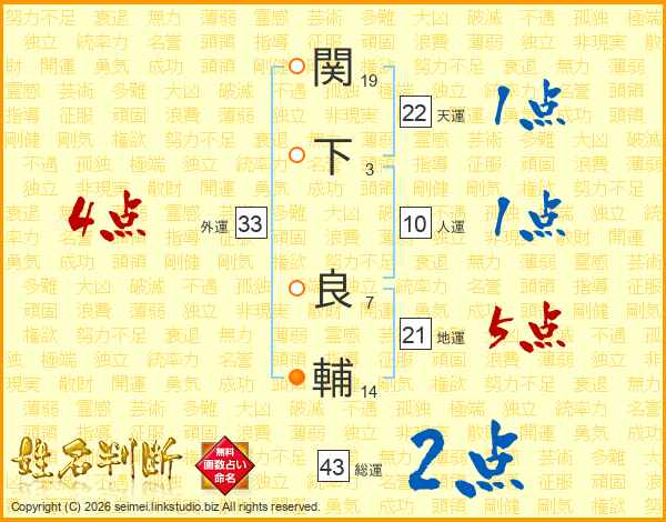 関下良輔さんの天運は22画の1点!