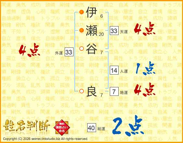 伊瀬谷良さんの外運は33画の4点!