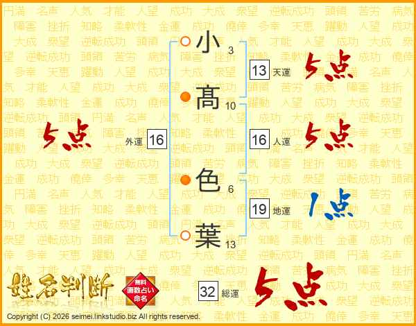 小髙色葉さんの総運は32画の5点!