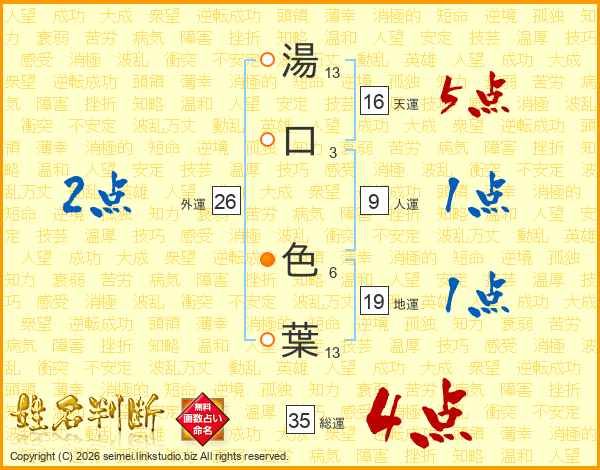 湯口色葉さんの総運は35画の4点!