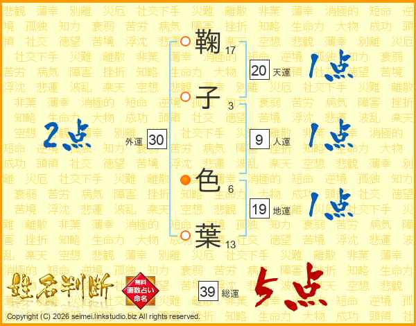 鞠子色葉さんの総運は39画の5点!