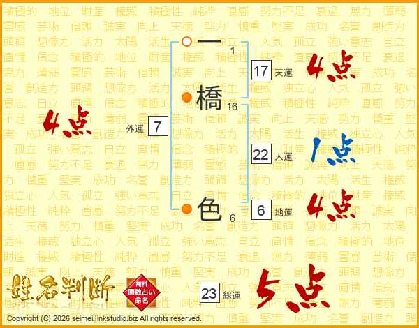 一橋色さんの天運は17画の4点!