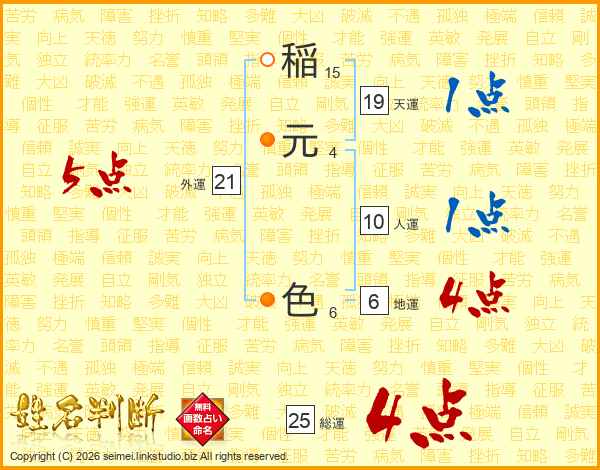 稲元色さんの総運は25画の4点!