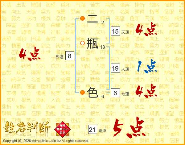二瓶色さんの総運は21画の5点