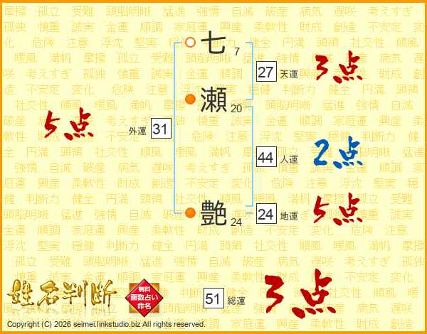 七瀬艶さんの総運は51画の3点!