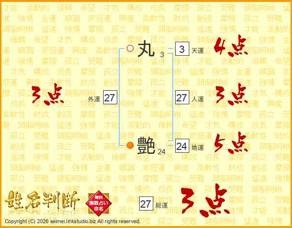 丸艶さんの総運は27画の3点!